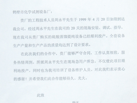 More>>- Hebi Jinxing - ultra clean high purity hydrogen peroxide production technology and equipment